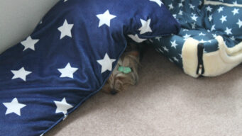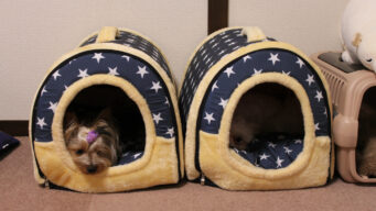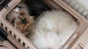 1つのクレートに2匹でギューギュー